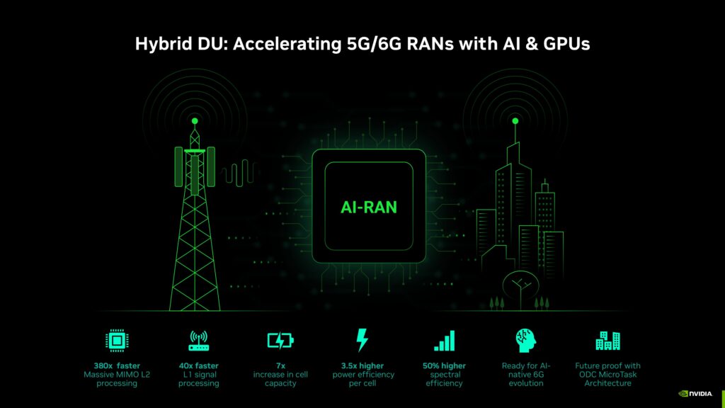 - Enable Incremental RAN Intelligence: GPU-accelerated DUs provide the compute headroom needed for ML-driven scheduling, channel prediction, and multi-cell coordination — paving the way for next-generation intelligent RANs.
