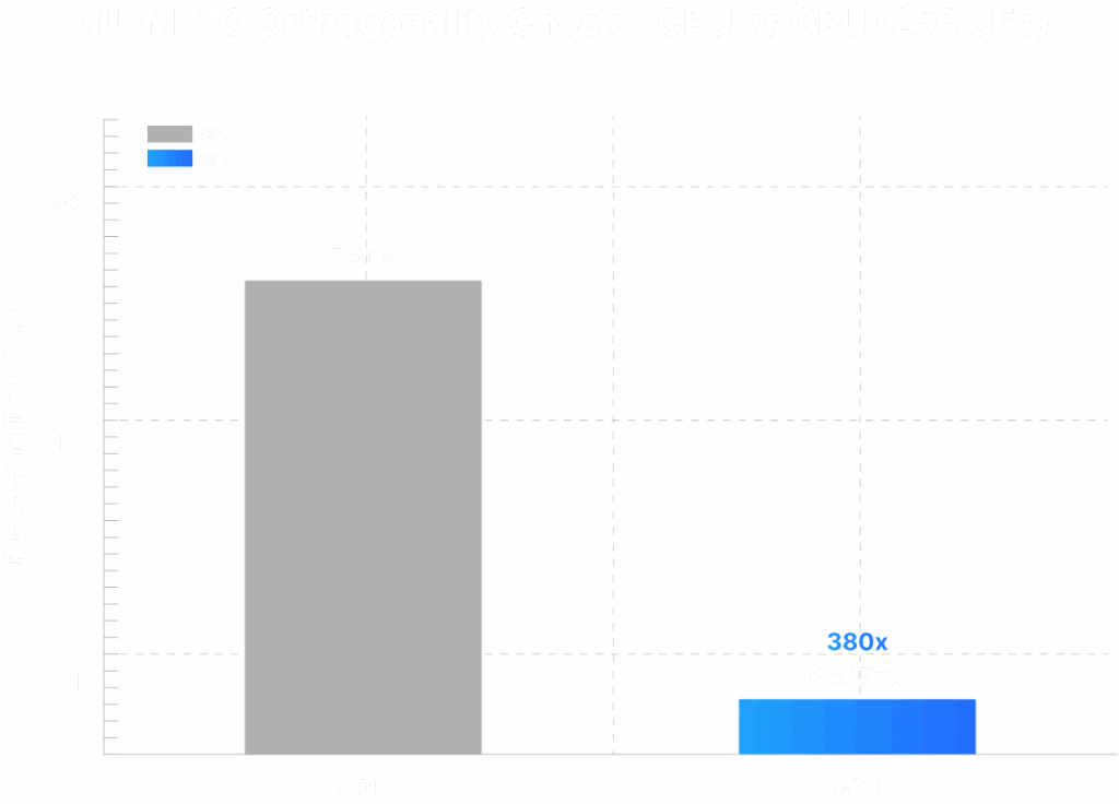 | Orthogonality Checks & Pairing (For 256 UEs) | 79 ms | 0.29 ms | Dense MU-MIMO pairing; 1.5x higher spectral efficiency |